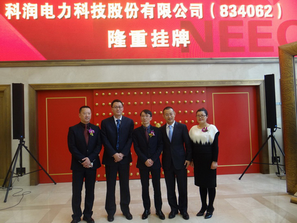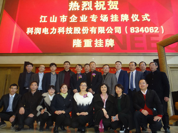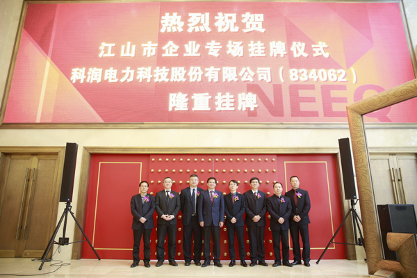 11月18日,全國(guó)股轉(zhuǎn)系統(tǒng)江山企業(yè)專(zhuān)場(chǎng)掛牌儀式在北京舉行,科潤(rùn)電力科技股份有限公司正式在新三板上市,其證券簡(jiǎn)稱(chēng)為“科潤(rùn)電力”,證券代碼為“834062”。