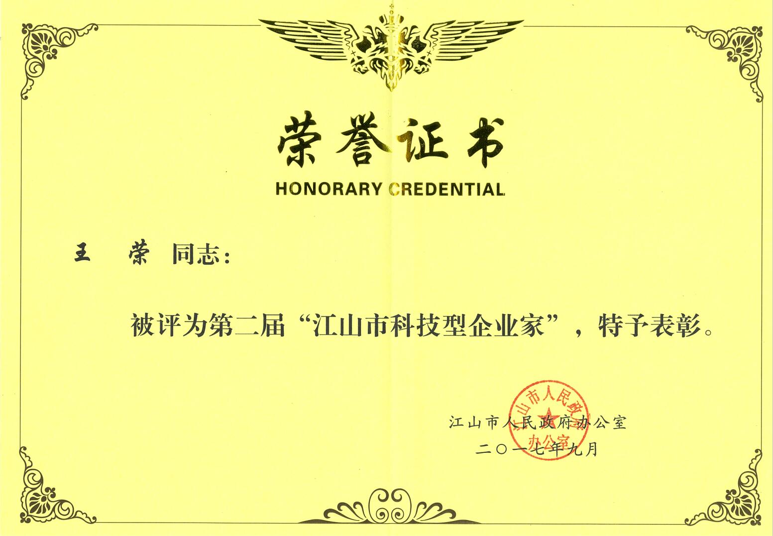 我市召開科技創(chuàng)新大會和人才工作會議——公司董事長王榮被評為江山市第二屆科技型企業(yè)家