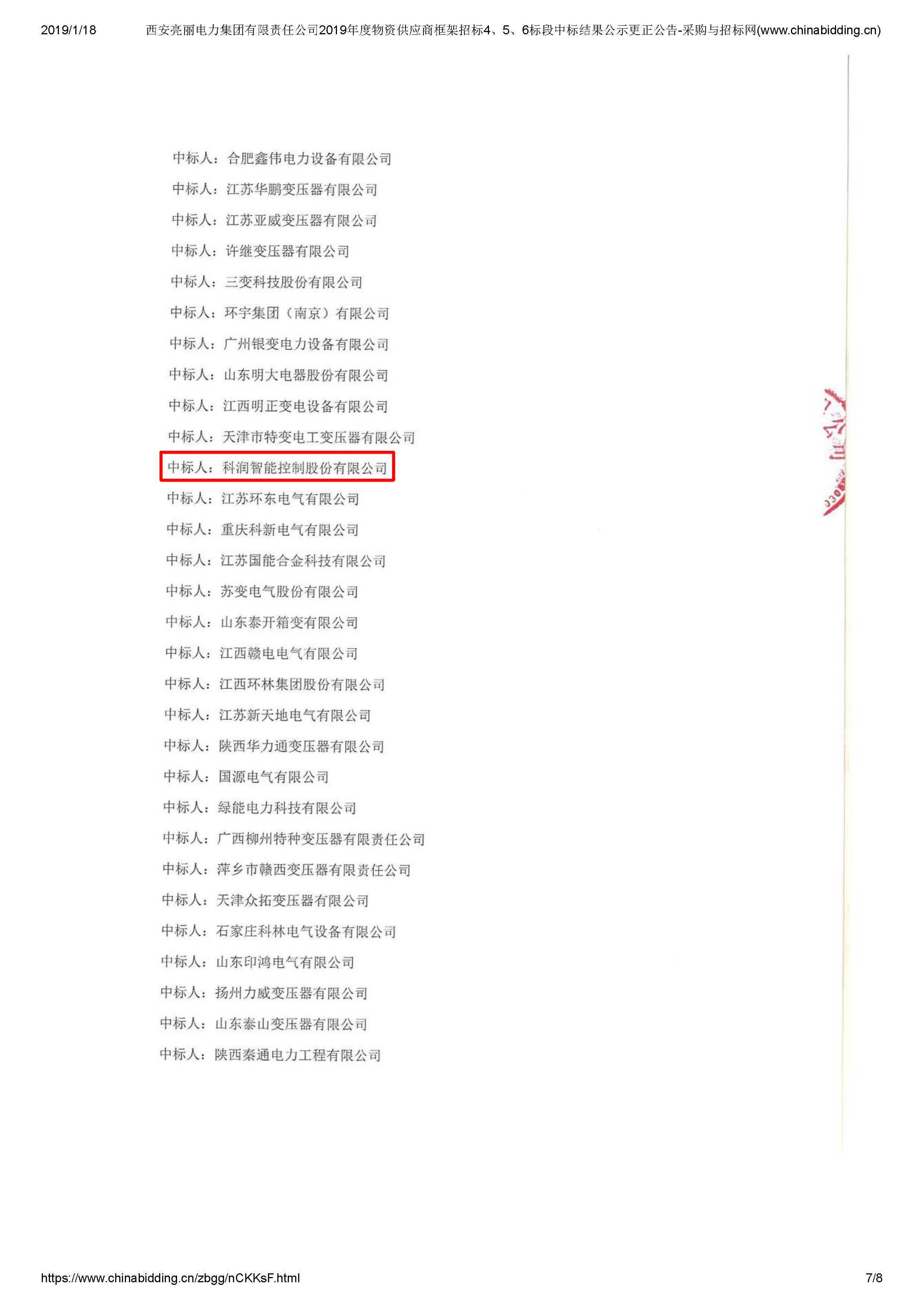 近日,捷報(bào)頻傳,科潤智能控制股份有限公司接連中標(biāo)了國網(wǎng)湖南省電力有限公司2018年集體企業(yè)物資協(xié)議庫存項(xiàng)目;西安亮麗電力集團(tuán)有限責(zé)任公司2019年度物資供應(yīng)商框架招標(biāo)4、5、6標(biāo)段項(xiàng)目。公司產(chǎn)品再度邁進(jìn)了國網(wǎng)平臺(tái)高起點(diǎn)的良好銷售經(jīng)營模式,實(shí)現(xiàn)了2019年的開門紅!讓全體科潤人倍感振奮、倍受鼓舞!