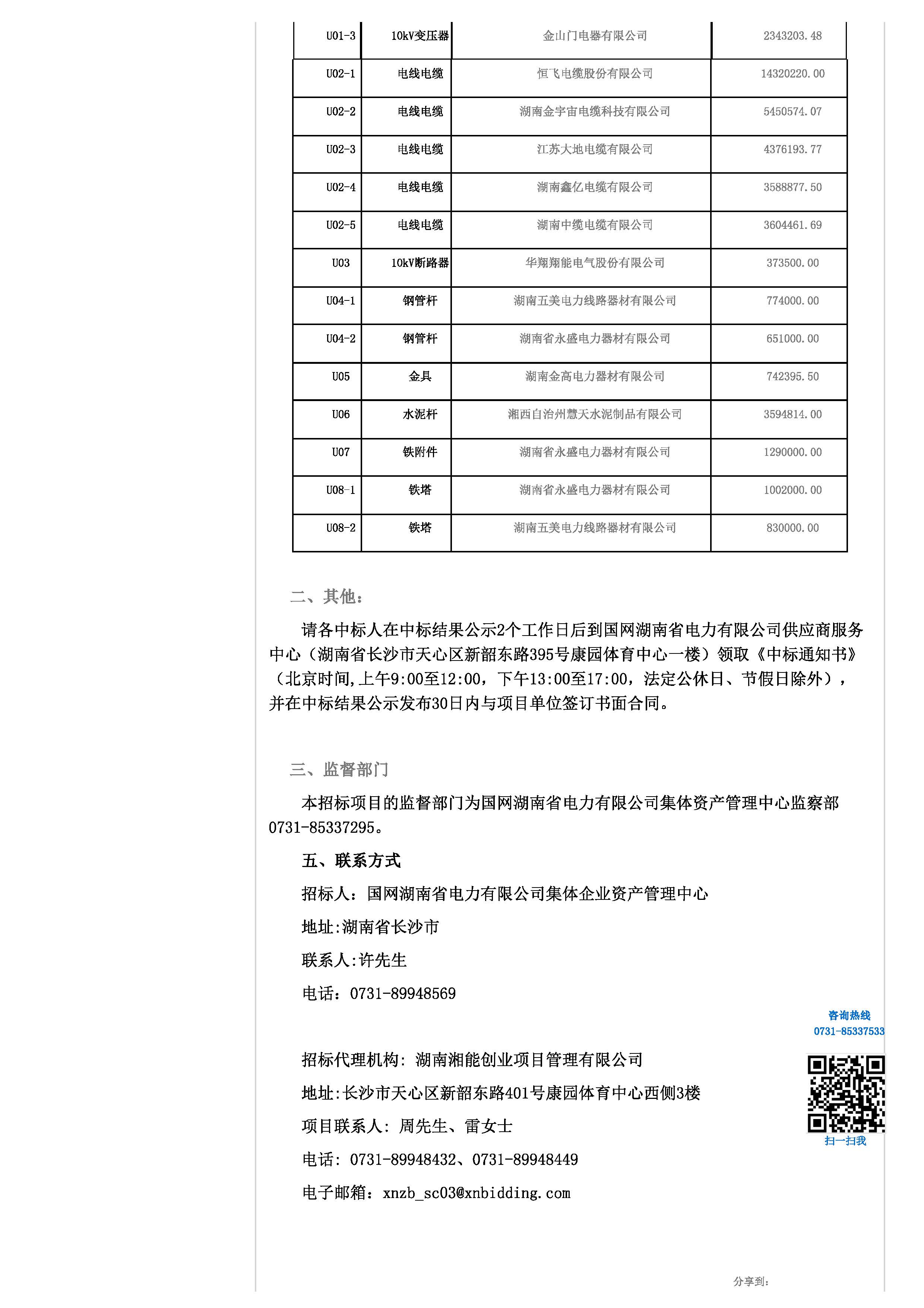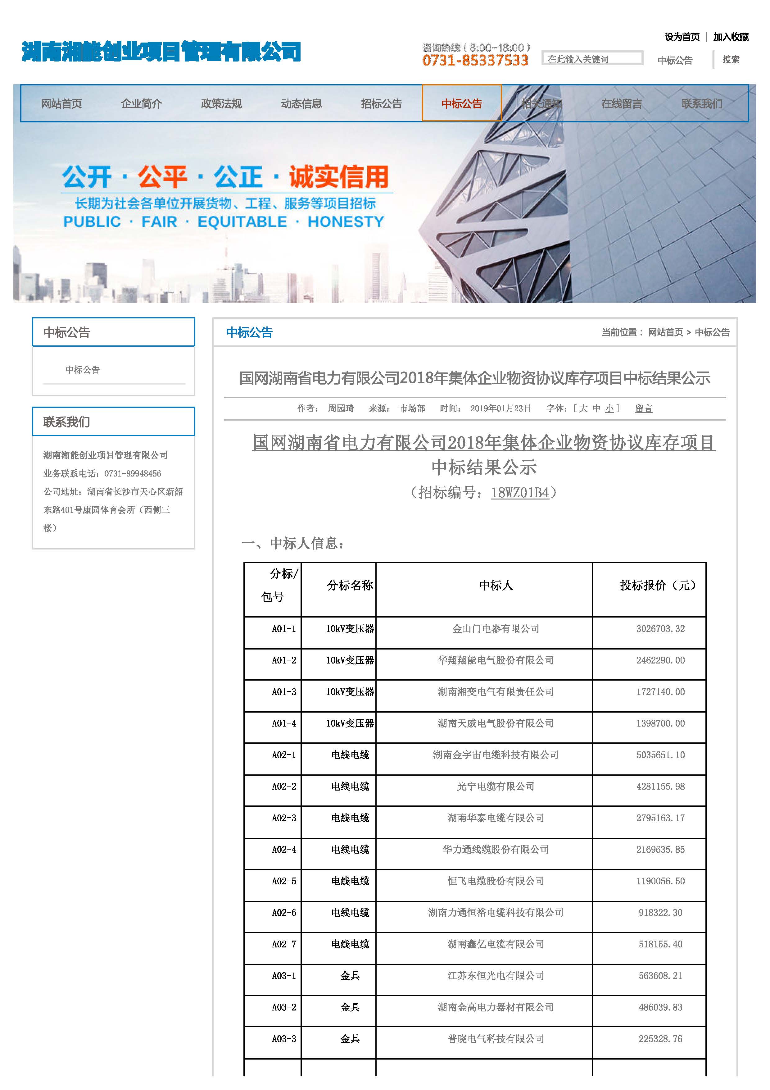 1、國網(wǎng)湖南省電力有限公司2018年集體企業(yè)物資協(xié)議庫存項(xiàng)目,中標(biāo)金額:16882781.52元。