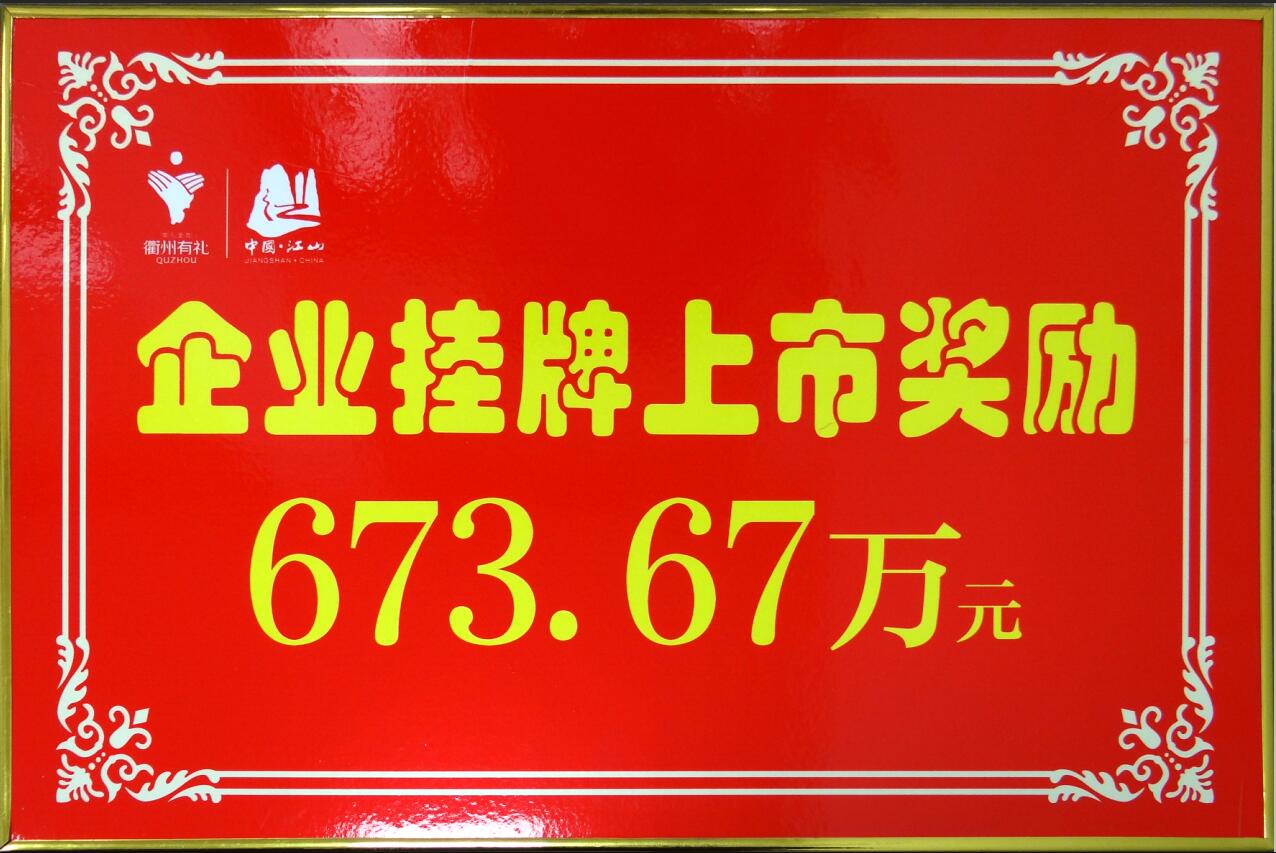2019年2月13日,江山召開農(nóng)歷新年的首個(gè)全市性會(huì)議——“三個(gè)年”活動(dòng)動(dòng)員大會(huì),回顧總結(jié)去年工作取得的成績(jī),系統(tǒng)謀劃新一年工作,啟動(dòng)開展“三個(gè)年”活動(dòng)。我司受邀參加,我司榮獲市長(zhǎng)特別獎(jiǎng)畝產(chǎn)效益獎(jiǎng)二等獎(jiǎng)和企業(yè)掛牌上市獎(jiǎng)。