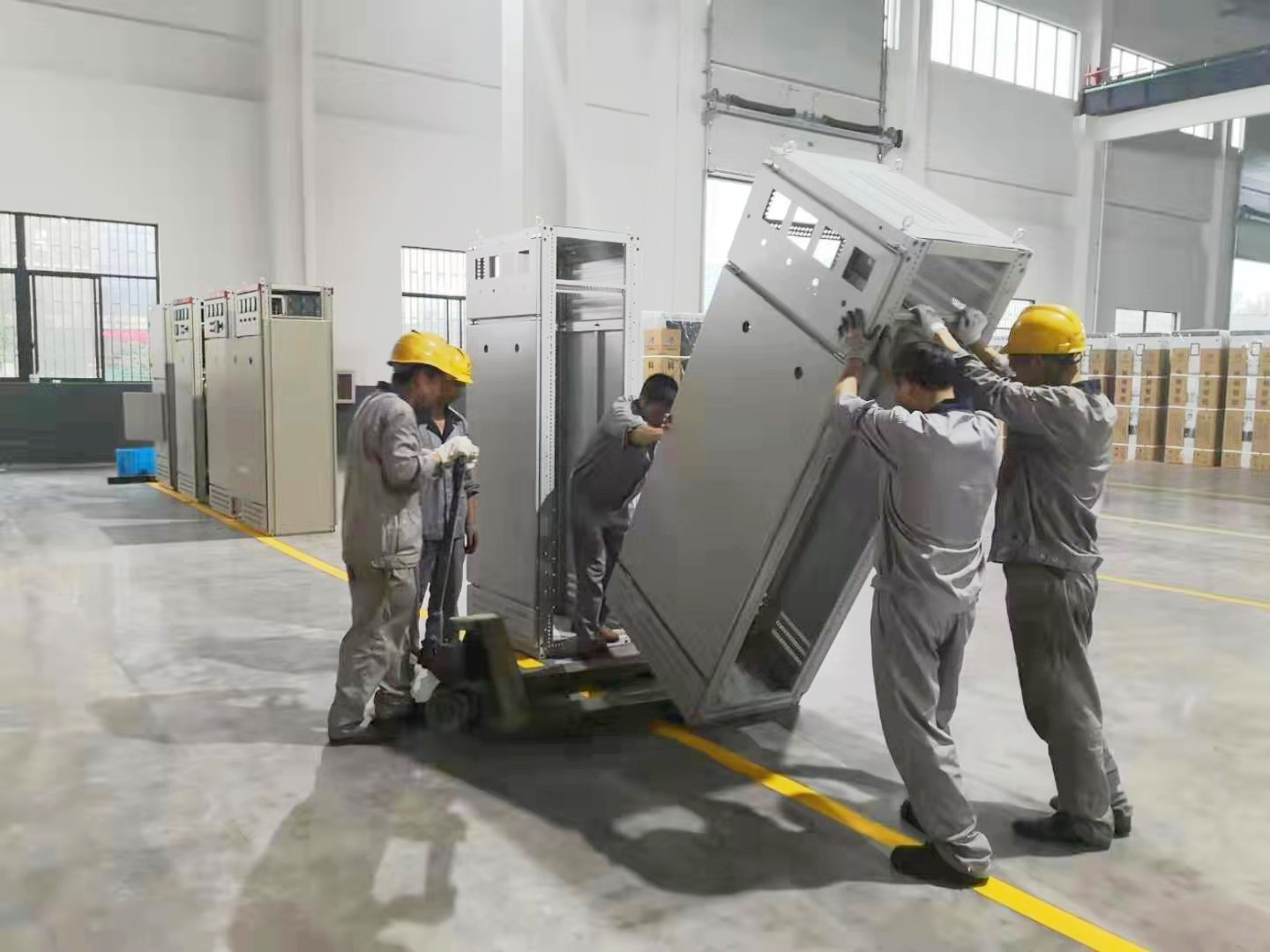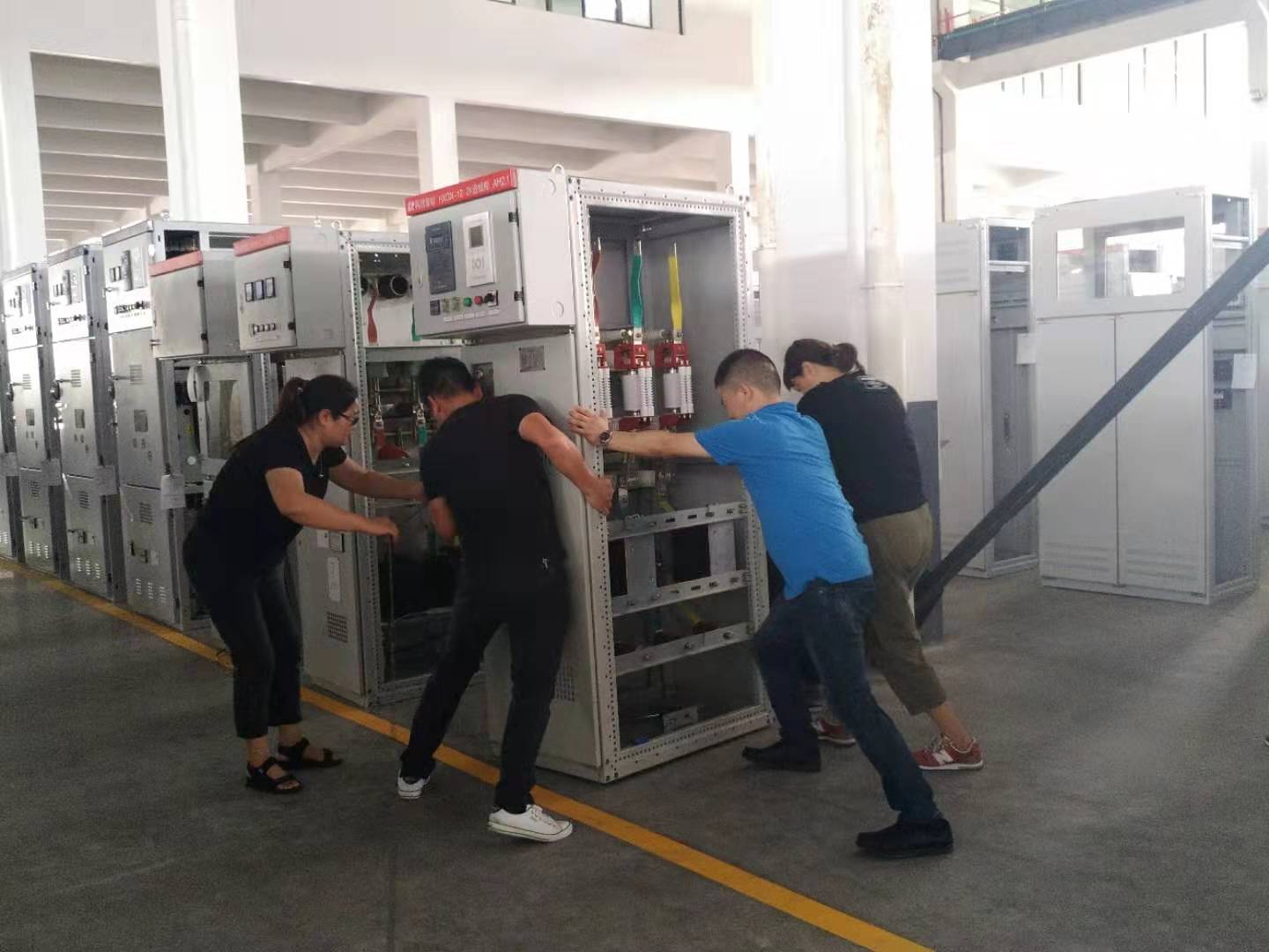 新場(chǎng)所,新布局。201977日,部分生產(chǎn)車(chē)間員工及后勤人員主動(dòng)放棄了休息日,為搬移放置3#廠房?jī)?nèi)的高低壓變壓器而忙碌著。201978日、10日及11日,為成套車(chē)間盡快順利入駐3#新廠房,盡早適應(yīng)新的生產(chǎn)場(chǎng)所,同時(shí)也能夠使得車(chē)間布局更加地完善合理,王榮董事長(zhǎng)及章群峰總經(jīng)理親臨3#廠房指揮協(xié)助現(xiàn)場(chǎng)人員進(jìn)行成套車(chē)間整個(gè)生產(chǎn)線的搬遷任務(wù)。此次搬遷為不影響正常生產(chǎn),搬遷人員多數(shù)為其他各部門(mén)支援成員——銷售人員、安全設(shè)備部人員、物流部人員、各事業(yè)部人員及后勤人員,其中,10余位公司和部門(mén)領(lǐng)導(dǎo)也參與其中,與大家一起為搬遷任務(wù)貢獻(xiàn)自己的一份力量。