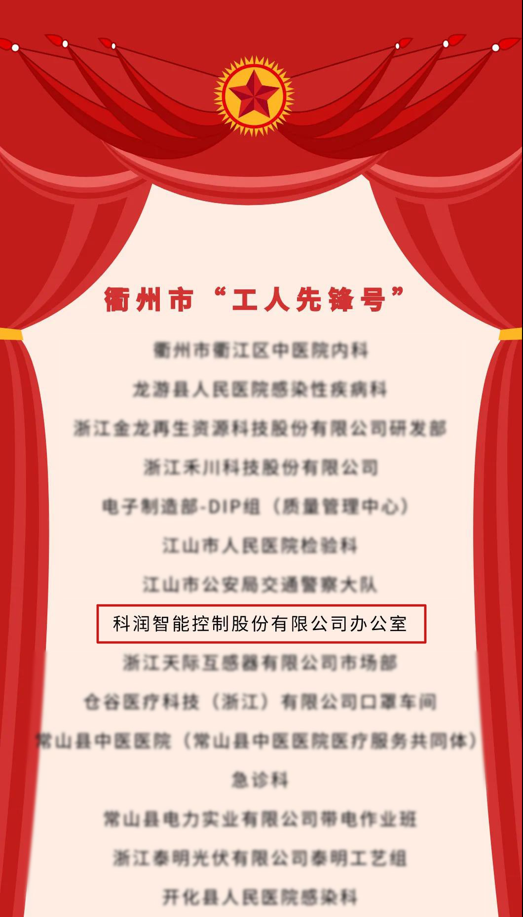 喜訊:公司辦公室榮獲衢州市“工人先鋒號(hào)”