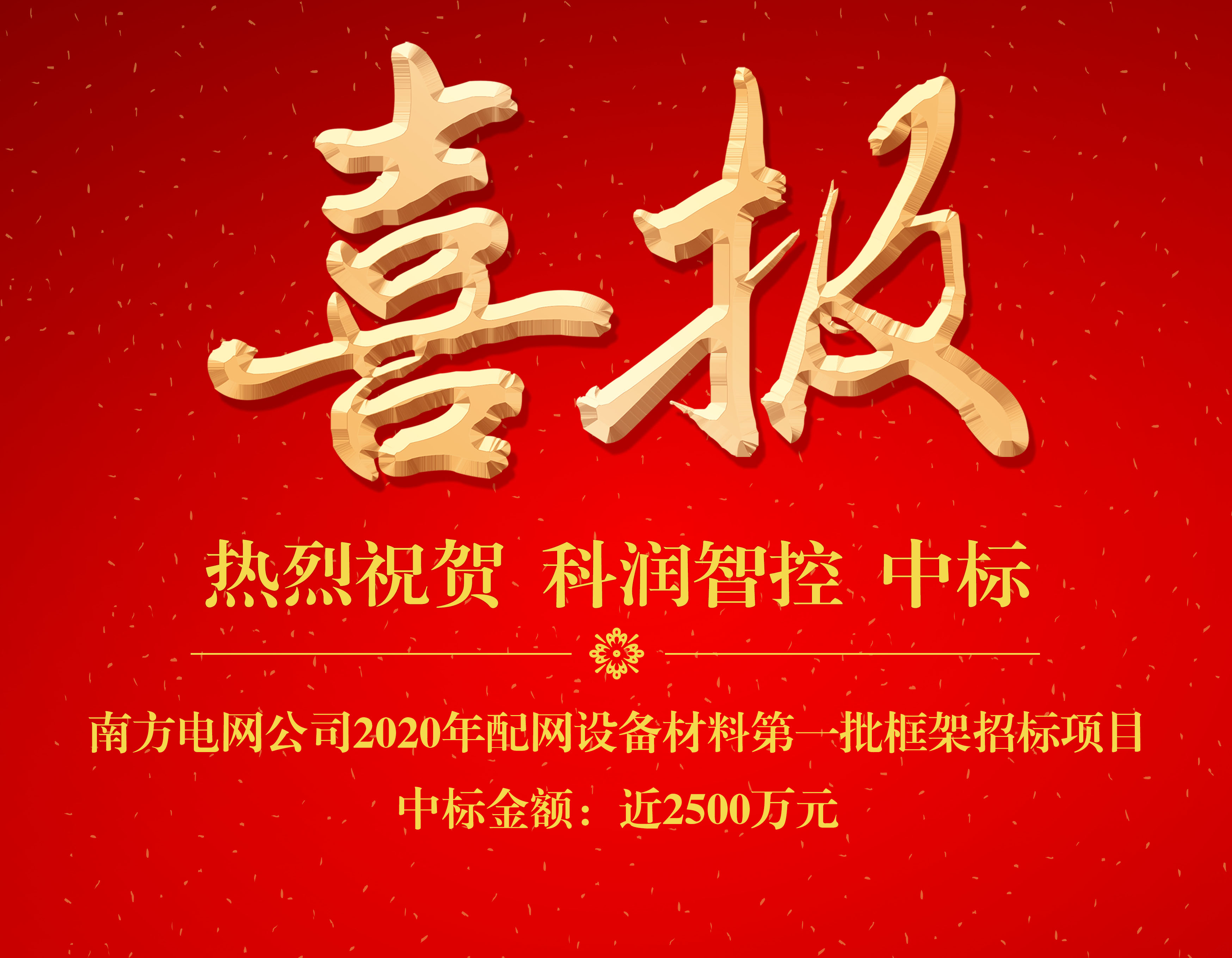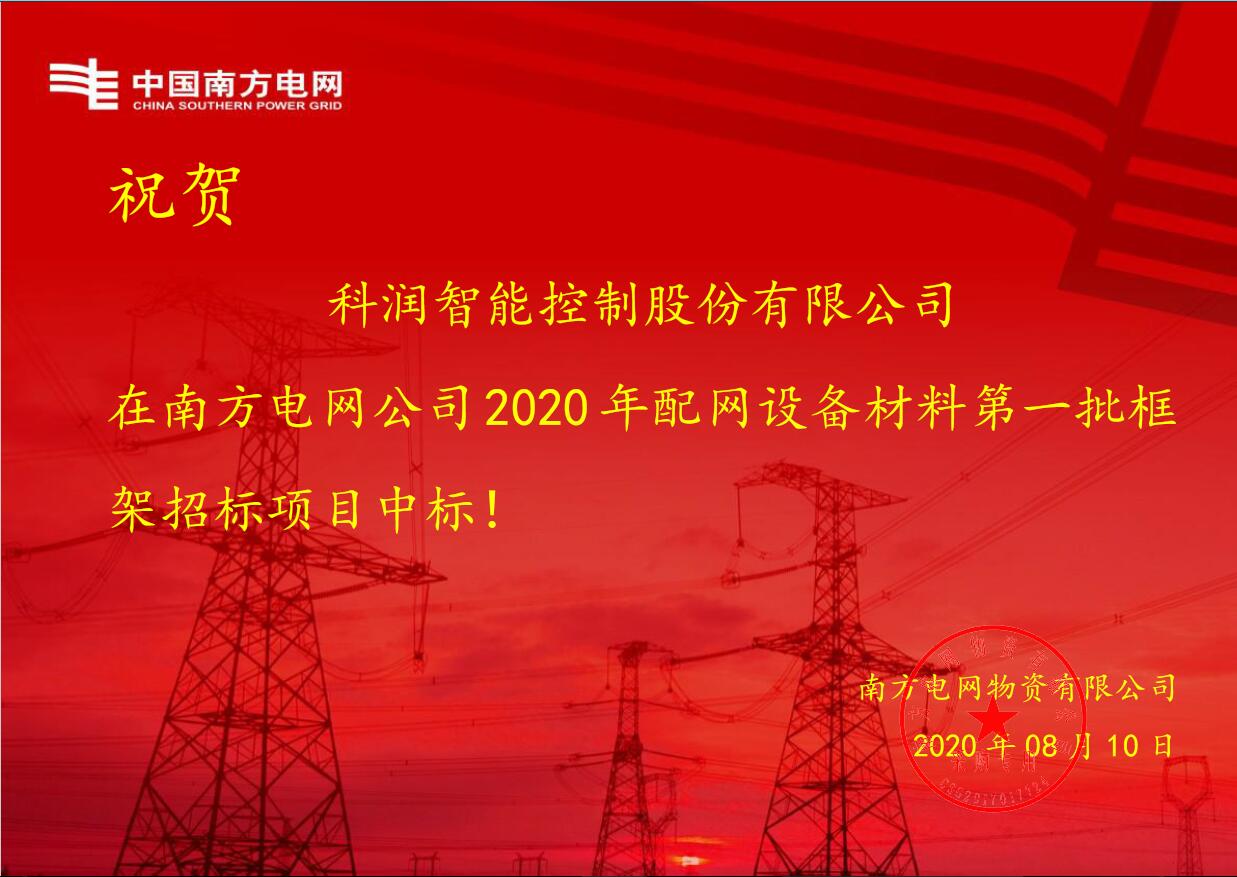 熱烈祝賀我司中標(biāo)南方電網(wǎng)公司2020年配網(wǎng)設(shè)備材料第一批框架招標(biāo)項(xiàng)目,中標(biāo)金額近2500萬元。