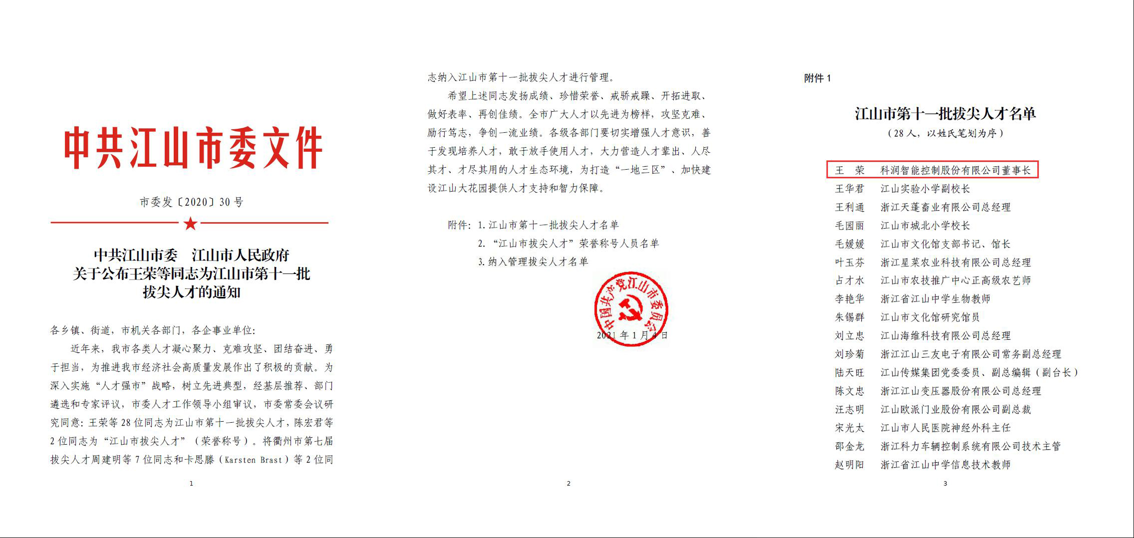 熱烈祝賀公司董事長(zhǎng)王榮同志被授予“江山市第十一批拔尖人才”。