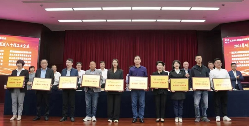 我司榮獲江山市2021年研發(fā)投入十強(qiáng)工業(yè)企業(yè)榮譽(yù)稱號