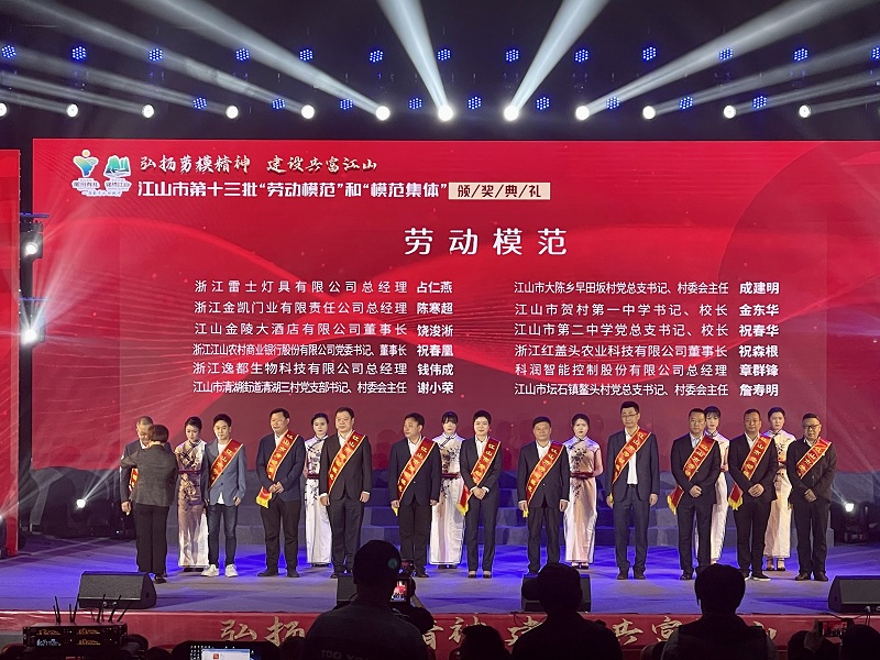 4月28日下午,江山市舉行第十三批“勞動模范”和“模范集體”頒獎典禮,充分調動全市勞動者秉承和弘揚勞模精神、勞動精神,積極投身經濟社會發(fā)展大局,在“奮力打造三省邊際展示中國式現代化浙江篇章衢州實踐的示范窗口”中凝聚前行合力,激發(fā)創(chuàng)造活力,為實現“衢州當龍頭、全省爭上游”目標貢獻力量。市委書記朱素芳致辭,市領導何日根、朱永平、毛正彩、周立武等參加,公司總經理章群峰獲評“勞動模范”榮譽稱號上臺領獎并發(fā)言。
