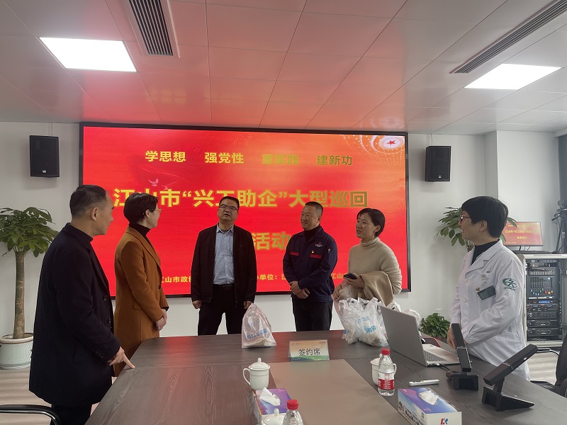 1214日上午,江山市政協(xié)副主席何正芳蒞臨公司考察指導(dǎo),何主席看望了江山市人民醫(yī)院來司義診的醫(yī)護(hù)人員,并慰問了正在參加義診的公司員工。江山市人民醫(yī)院黨委書記柴曉東,公司總經(jīng)理章群峰等領(lǐng)導(dǎo)陪同。